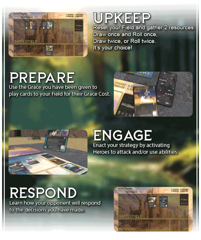 A lore-driven TCG with dynamic resource rolls, directional combat, faction synergy, and epic tactical gameplay.